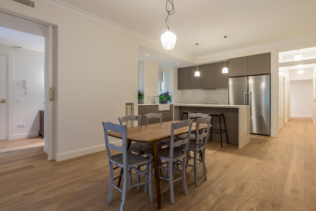 - Luminoso salón-comedor orientado a la misma calle Ferraz con 2 ventanales que acceden a un estupendo balcón corrido.