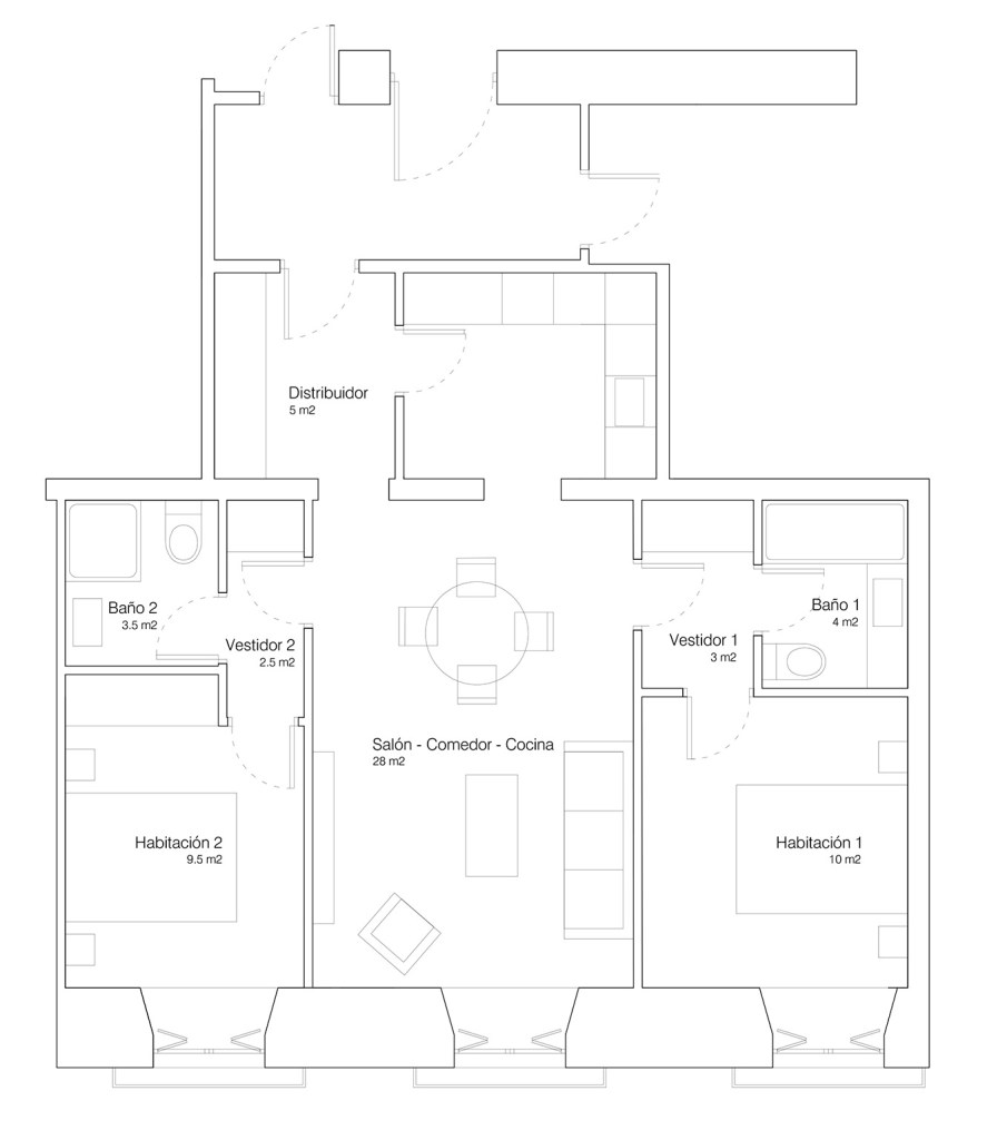 91 m2 construidos con una distribución muy coherente. 2 habitaciones. Elementos recuperados y restaurados por los mejores profesionales siguiendo la filosofía de Pontejos. Acabados impecables. Incluye iluminación y detalles de decoración.